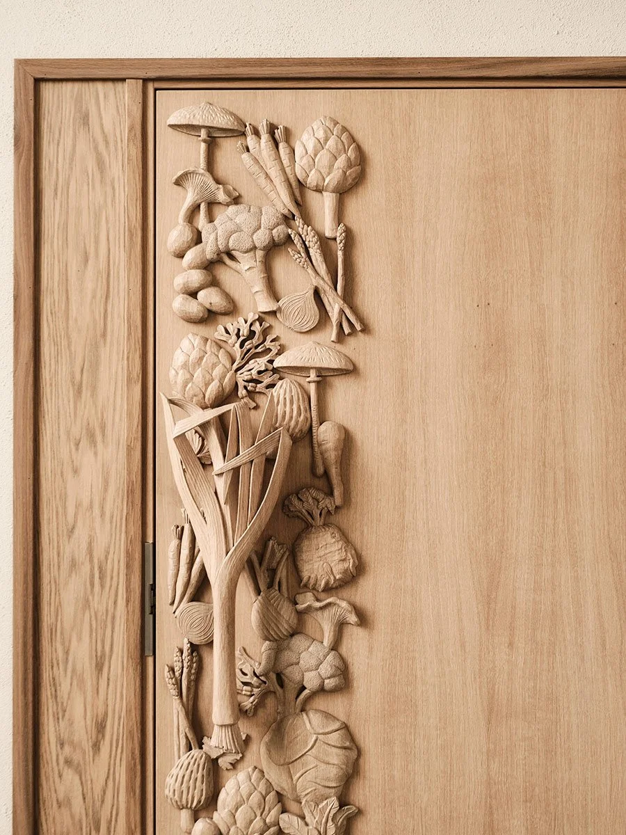 Det specialdesignede trækøkken er skabt af Nordiska Kök eksklusivt til Daniel Berlins restaurant.