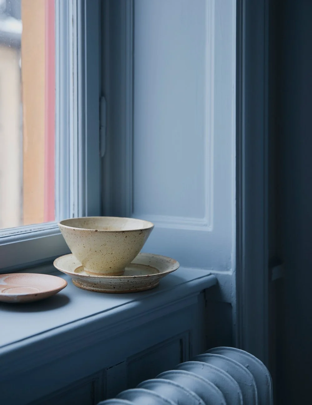 Ved at male både vægge, lofter, radiatorer og stuk i samme nuance skabes et blødere og mere afdæmpet udtryk i hjemmet.
