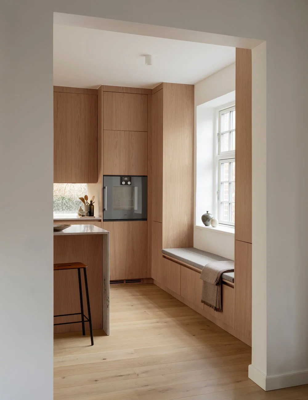Minimalistisk design med fokus på kvalitet og håndværk kendetegner dette køkken i Japandi-stil.