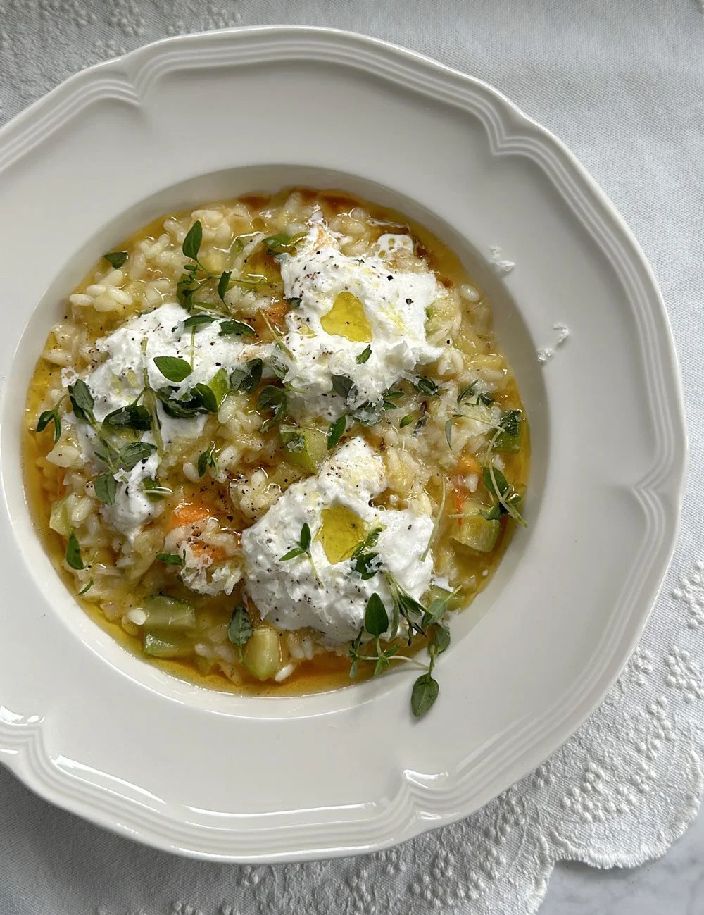 Risotto med sæsonens zucchini og tomat – en af de mange skønne retter, Anna har udviklet.