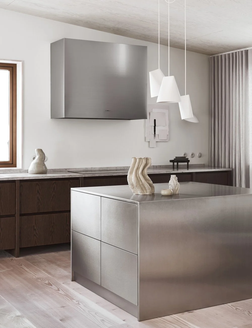 Rustfrit stål i køkkenet er desuden en af årets store køkkentrends ifølge Nordiska Köks årlige trendrapport: Køkkentrends 2025.