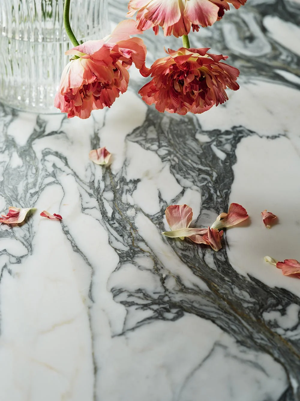 Arabescato Corchia-marmor med sin smukke, lidt mørkere ådring.